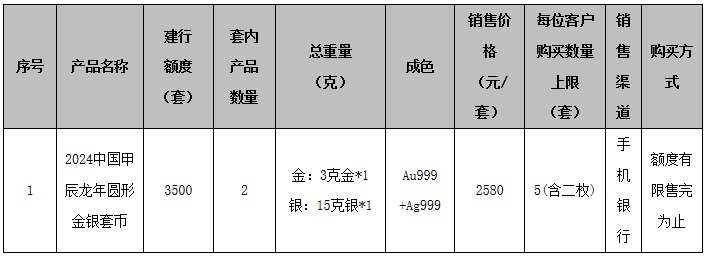 关于第三批“2024中国甲辰(龙)年贵金属纪念币”产品销售的公告